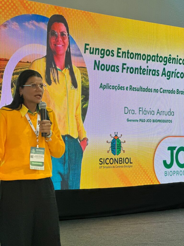 No dia 17 de setembro de 2025, a Dra. Flávia Arruda, Gerente de Pesquisa e Desenvolvimento da JCO Bioprodutos, participou da mesa-redonda do 18º Siconbiol – Simpósio de Controle Biológico, realizado na ExpoGramado, em Gramado (RS).